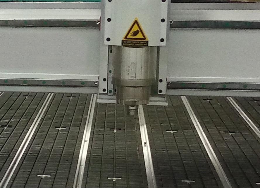 The CNC router is equipped with a vacuum table for a quick, time saving load.